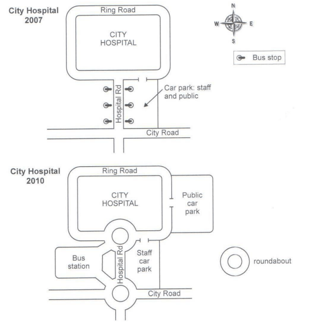 The two maps below show road access to a city hospital in 2007 and in 2010.